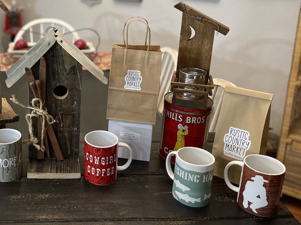 We are gardeners with nest run chickens. We love coffee. I make homemade marshmallows. He has a pepper obsession. We value “Made in the U.S.A.” And “Shop Local.” Many of our unique, one of a kind handmade crafts are made from renewed, reused, repurposed, recycled, and renovated materials. We resell “rustic” and “vintage” items we find here and there (Rustic 2nds). We love visiting thrift stores, garage sales and estate sales.