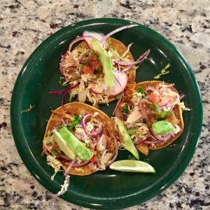 PORK CARNITAS TACOS WITH AVOCADO & CABBAGE-RADISH SLAW