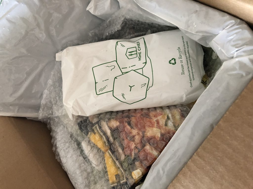 Home Chef packaging isn’t quite as earth friendly as Sun Basket; however, they are cheaper than Sun Basket. Each meal is packaged together in a clear bag.