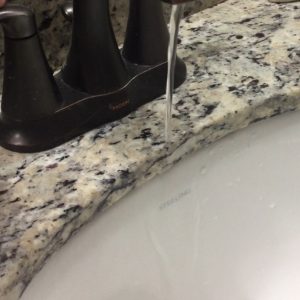 Turns out the house had a bathroom faucet design problem we didn’t notice until after we closed. The water flow ran too close to the sink rim. This made it hard to wash your hands so close to the sink bowl and if the water was running slow, it would flow onto the countertop. This was a big problem when the grandchildren came to visit, we would end up with water on the floor!